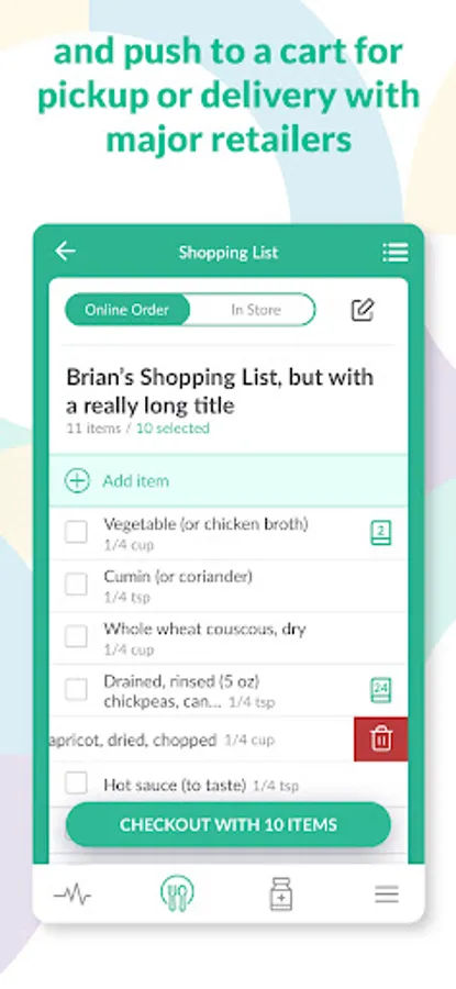 • Healthy without the hassle! Add recipe ingredients and recommended foods to your shopping list for online purchase via Walmart, Kroger, Target, Amazon Fresh or Instacart.
