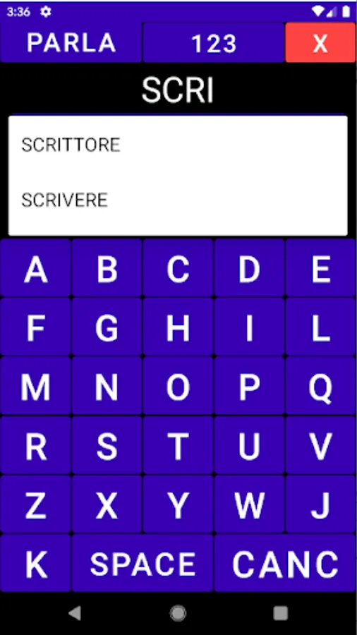 Using the keyboard with large buttons to facilitate the identification of the keys, the words / phrases are formed which subsequently by pressing the key speaks the mobile phone through the TTS speech synthesis of the Android system reads the written word / phrase.
