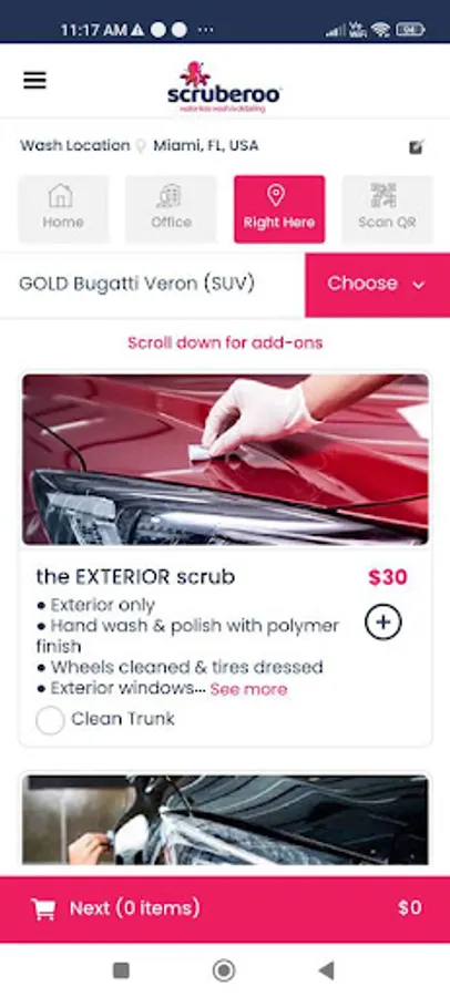 Scruberoo is a Waterless, Eco Friendly Car Wash. We will wash your car at your home or office. You can also find us in many shopping malls so be sure to look out for us.