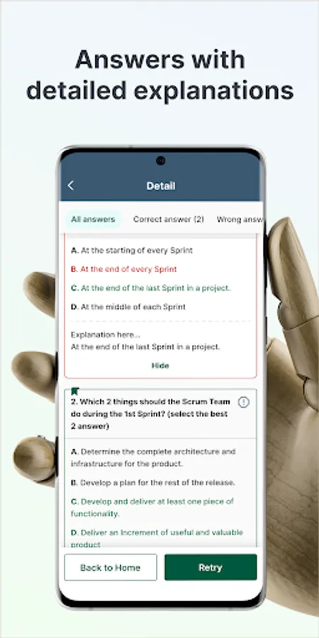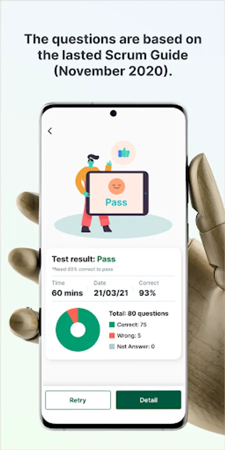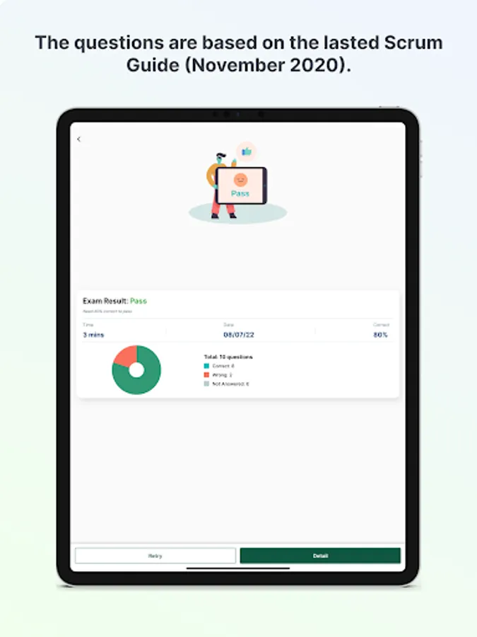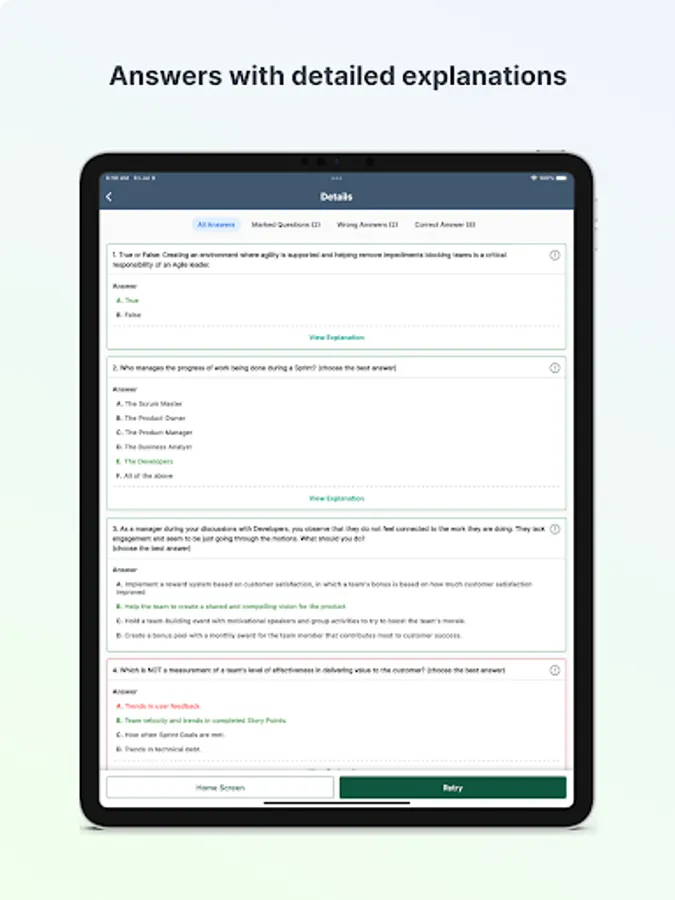 All the test content on the app are curated by ScrumPass experts. As you take the exams, you will be able to track a summary of your progress directly on the app. You will know which areas you need to improve on to improve your Scrum Knowledge and to become a Agile professional.
