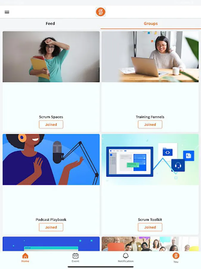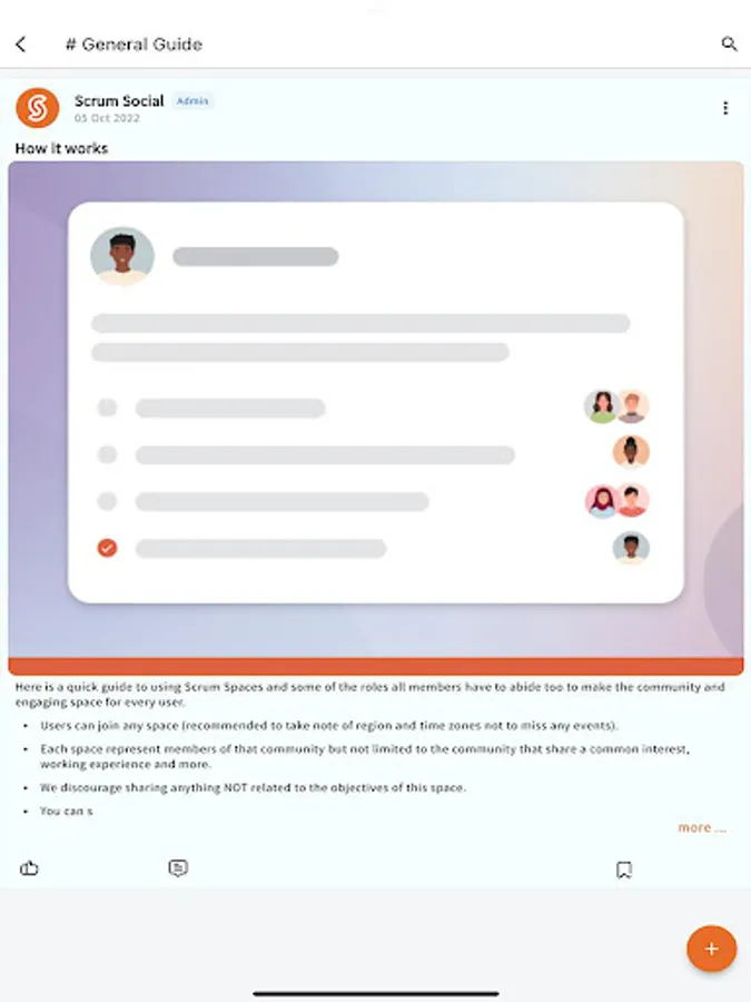 Join support groups with common interests, experiences, or locations and share and join different Scrum groups.