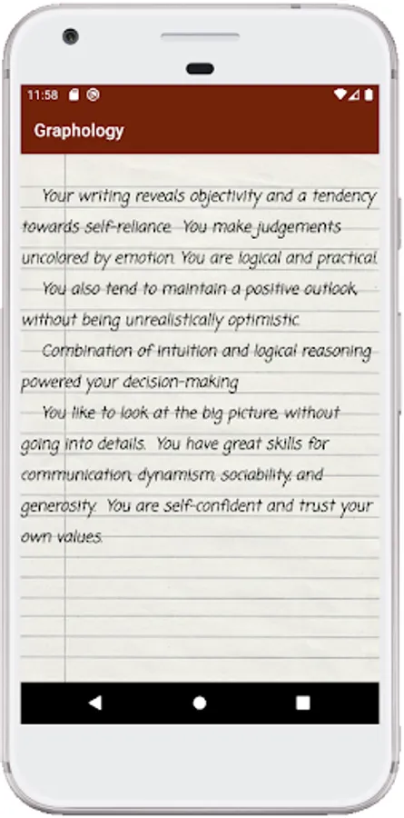 Take a handwriting personality or psychological test to get an accurate description of who you are and why you do things the way you do. You get to know more about your personality type, your intelligence, your psychological state, your interpersonal skills, and more! Graphology personality test is scientifically validated and reliable psychological model to measure personality.