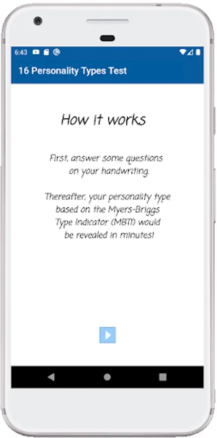 Take a handwriting personality or psychological test to get an accurate description of your Myers Briggs personality type. You get to know more about your personality type, your intelligence, your psychological state, your interpersonal skills, and more! Graphology personality test is a scientifically validated and reliable psychological model to measure personality.