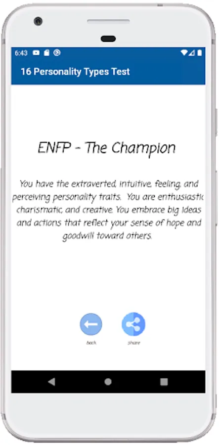 The Myers-Briggs Type Indicator (MBTI) is probably the most extensively used personality test in the world. Based on the answers to a list of questions, people are identified as having one of 16 personality types. The 16 personality types include ISTJ, ISTP, ISFJ, ISFP, INFJ, INFP, INTJ, INTP, ESTP, ESTJ, ESFP, ESFJ, ENFP, ENFJ, ENTP, and ENTJ. The goal of the 16 personality test is to allow respondents to further explore and understand their own personalities by providing them with a deeper understanding of what makes them who they are. With this understanding, they can make more informed decisions, better communicate with others, and build stronger relationships with other people.