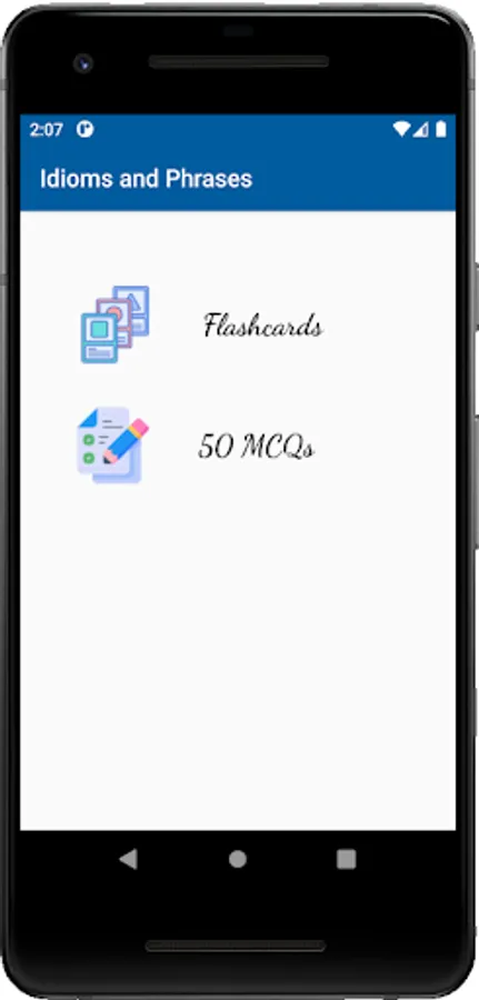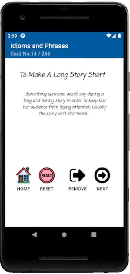 This app contains a selection of common English idioms and phrases. Click on the idioms and phrases to show the definitions and meanings.