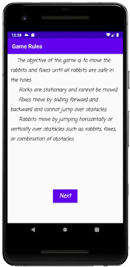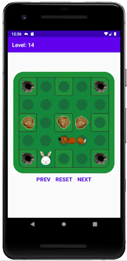 Each scenario is a puzzle with an objective to move the rabbits and foxes until all rabbits are safe in the holes. Rocks are stationary and cannot be moved. Foxes move by sliding forward and backward and cannot jump over obstacles. Rabbits move by jumping horizontally or vertically over obstacles such as rabbits, foxes, or combination of obstacles. These tricky logic puzzles have no time limit, and will keep your brain busy trying out every possible innovative ways to achieve your objective. The incremental difficulty level design makes building a brain training habit easy and fun.