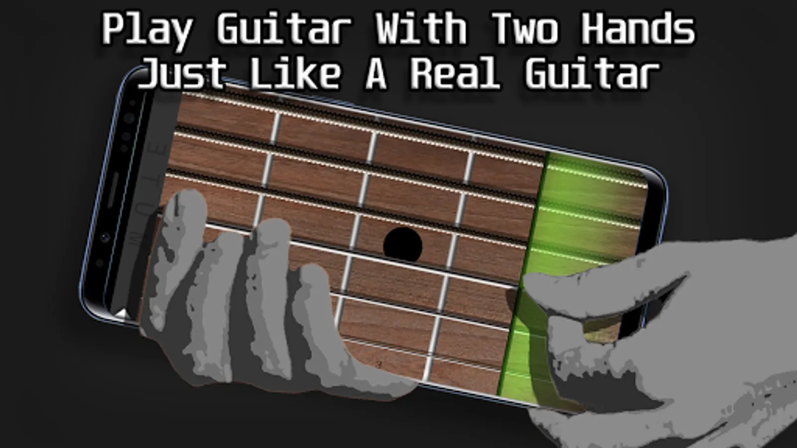 Play guitar and bass on your phone like it should be, use both hands, one to fret and the other to pick!