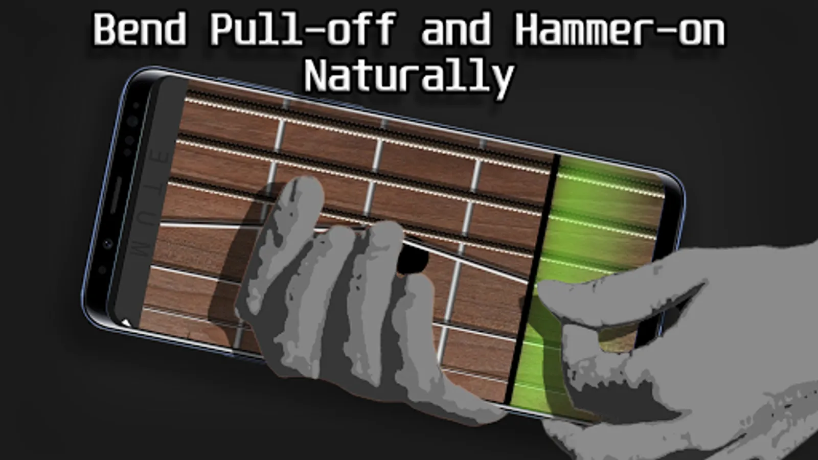 Pick, Bend, Pull-off and Hammer-on just like on a real guitar!
