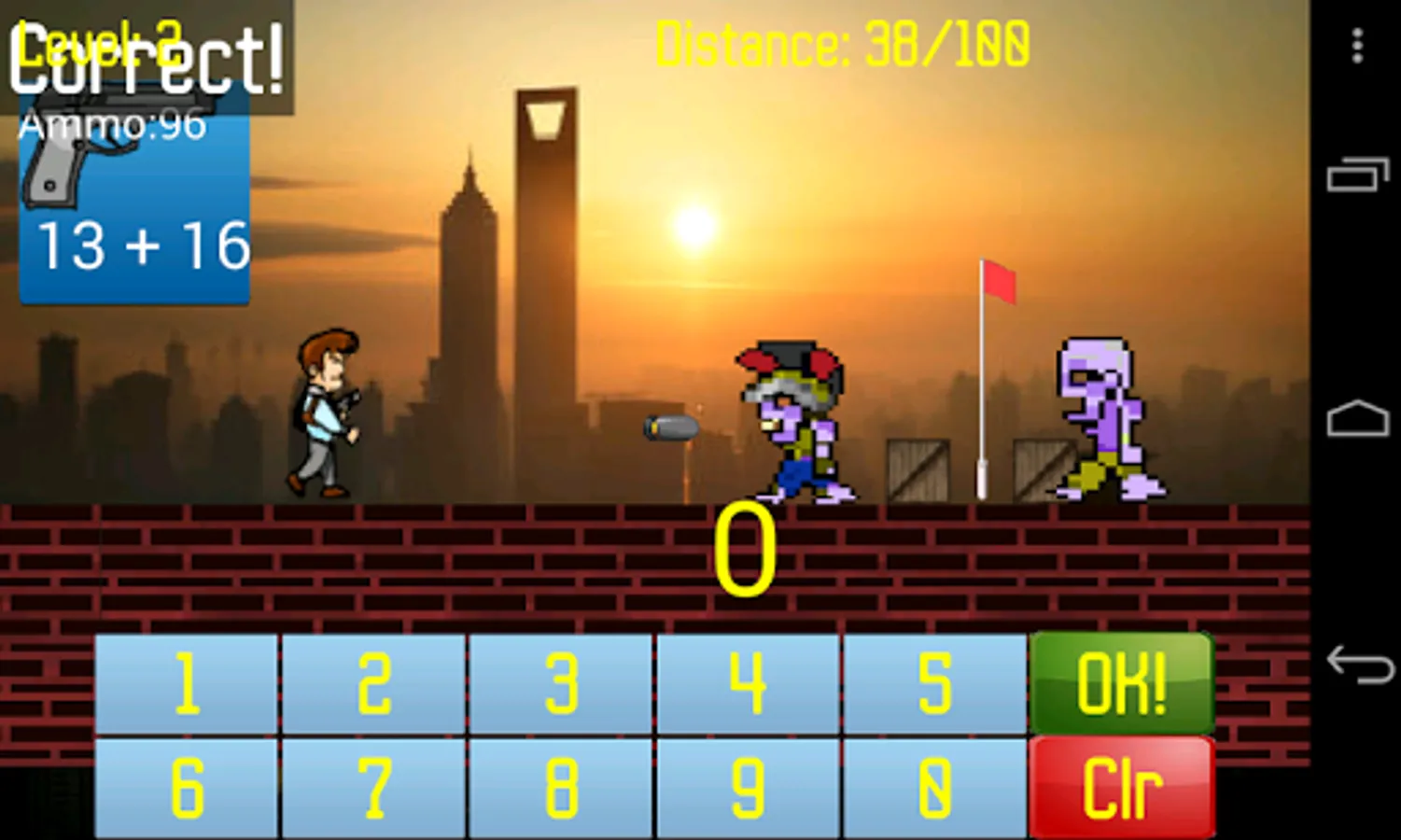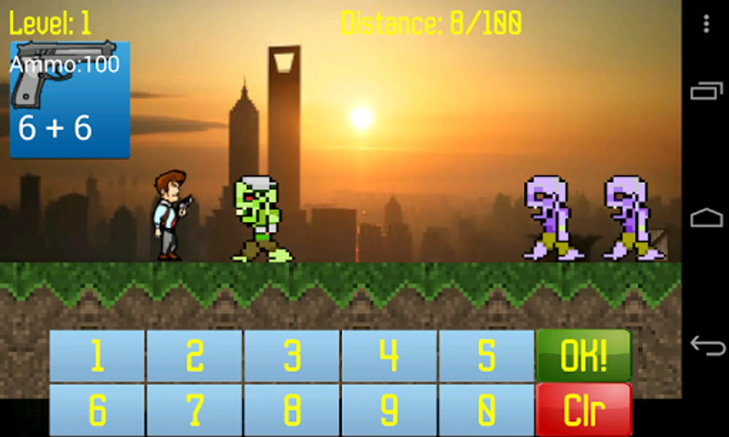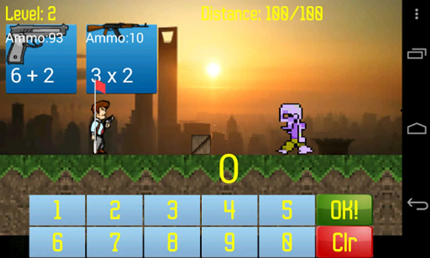 The aim is to get to the end of each level; you can shoot at the monsters by entering the answer to one of the sums. If you get it right, you will shoot the weapon linked to the question. Different weapons are available, but the better and more powerful the weapon, the harder the sum! If you get to the end of the level, you go onto the next level, which has harder sums and more monsters. If any monsters manage to reach you, it's game over!