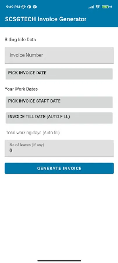 This Application will be useful for SCSGTECH Contractors to create invoices.