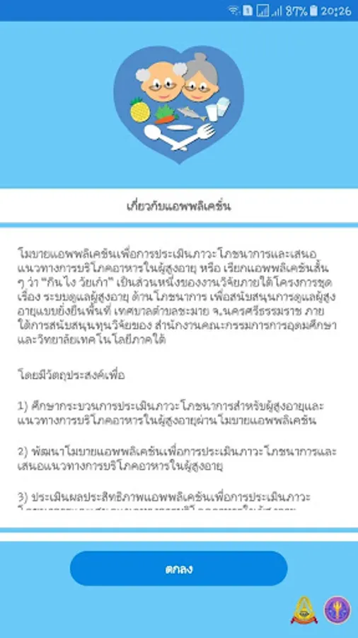 Is part of a research project under the project Elderly nutrition care system To support the sustainable care for the elderly, Chamay Subdistrict Municipality, Thung Song District, Nakhon Si Thammarat Province
