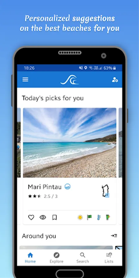 Get daily personalized suggestions with the beaches best suited for you, based on your preferences, or explore the most popular and best-rated ones!