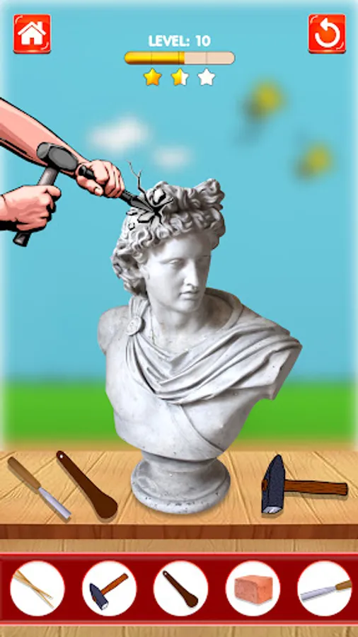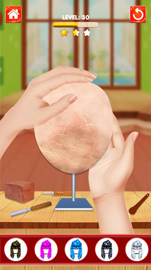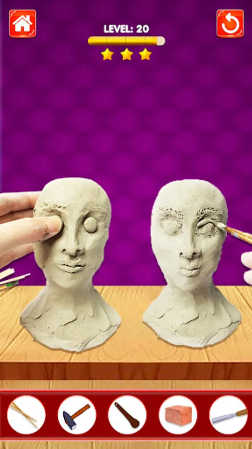 In Sculpture sculpt people's clay face Wood games Shop, you can complete your sculpt face clay craft face mask gameplay in the following stages Sculpt Mud reshape clay cutting and drawing a face with a sculpture stick, polishing, item placing, and finally color painting. Face maker clay sculpting and carving at the sculpting Shop are very satisfying and fun games. Because there are multiple tools for sculpting carving, cutting, and the board while clay turns into the face.