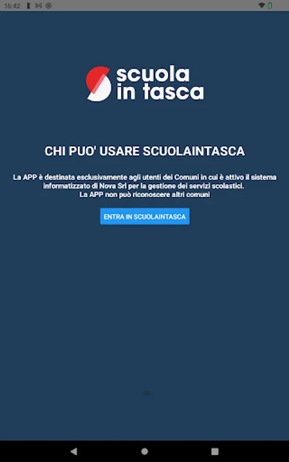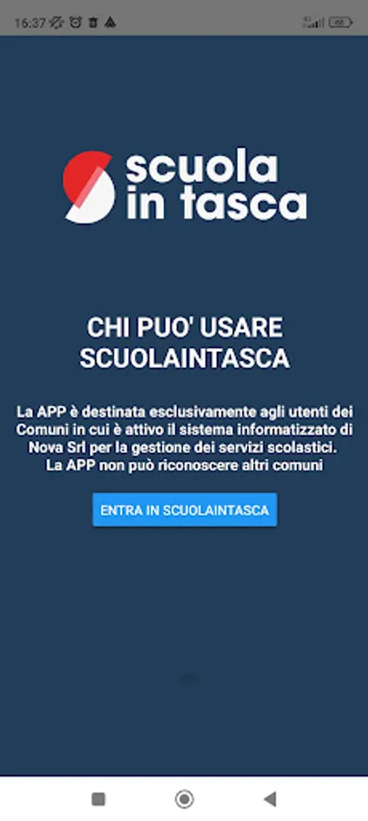 Scuola In Tasca is Nova Srl's mobile application for managing your children's school services. Access to the app can only be made by users of the Municipalities in which the service with Nova Srl is active.