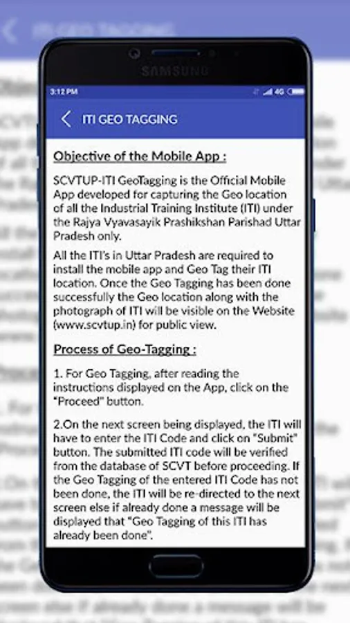 1. For Geo Tagging, after reading the instructions displayed on the App, click on the “Proceed” button.
