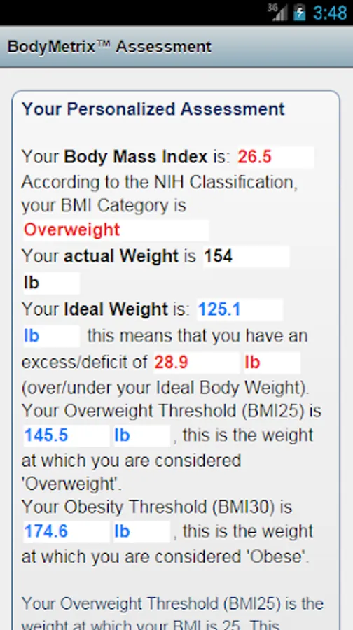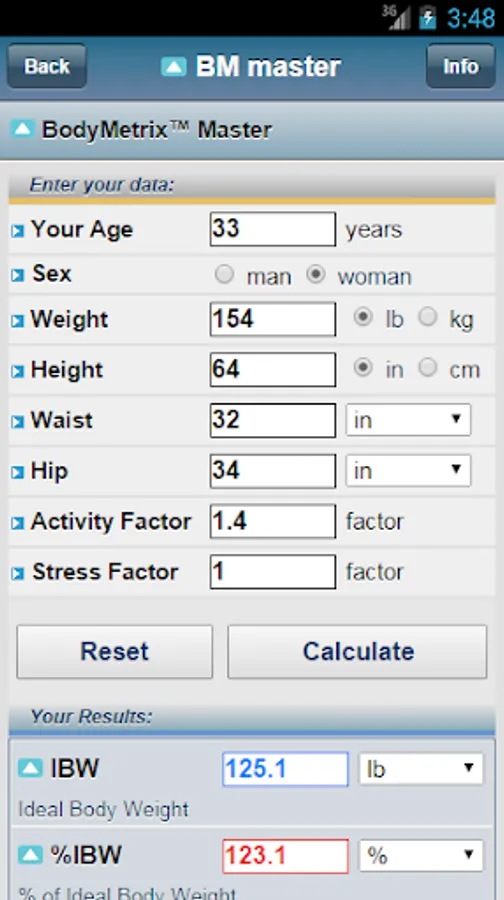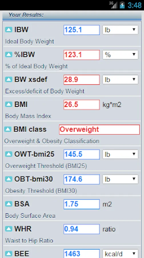 Compute your own Body Weight parameters in one single panel. Assess your BMI, body fat, obesity threshold and much more... with confidentiality, reliability, and absolute privacy.