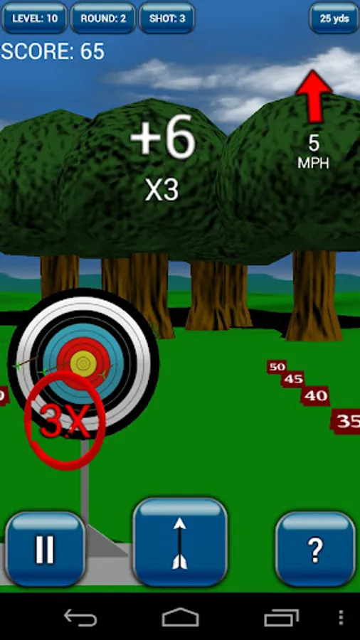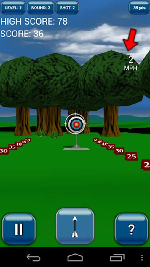To shoot just hold the fire button and tilt to aim. Adjust your aim for the distance and wind then release the button. Score more points by hitting closer to the center of the target.