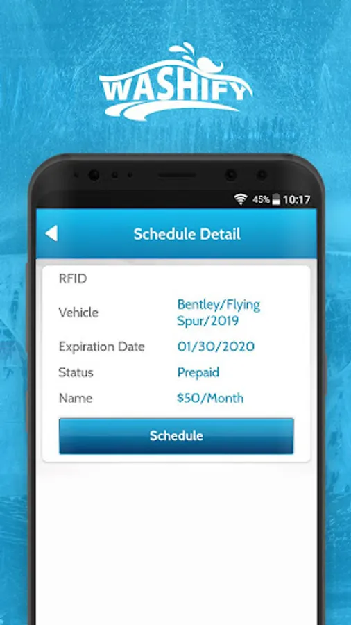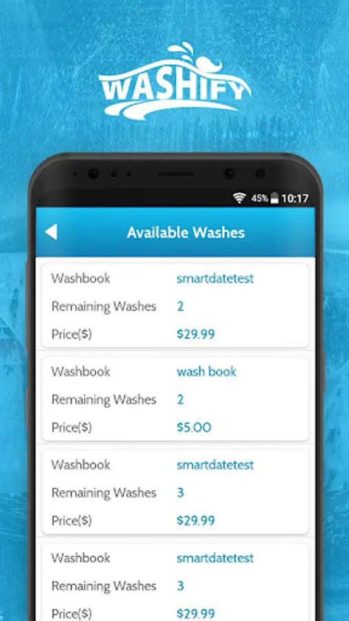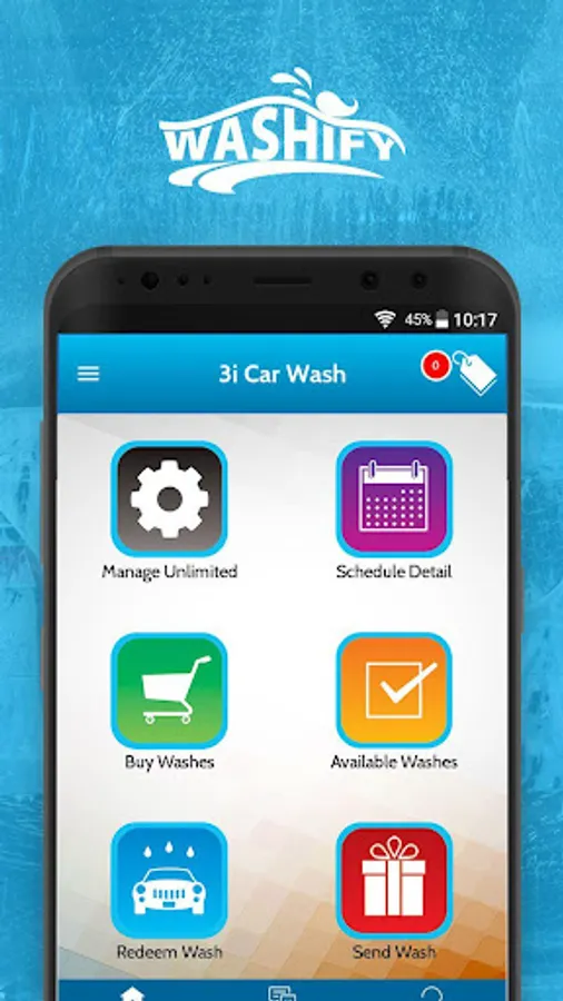 detail, purchase washes online, and send a wash to a friend. The app is