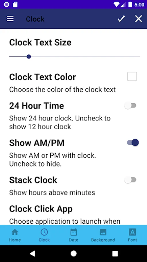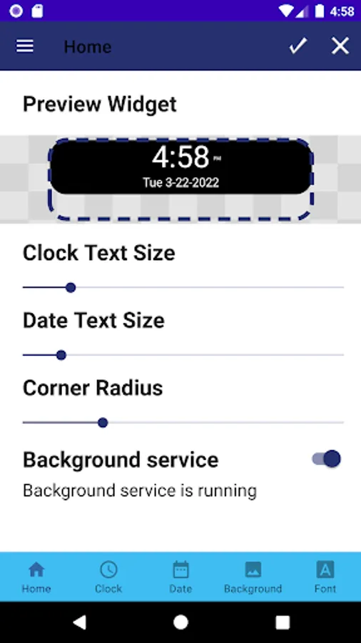 ** If you cannot see clock or date on widget resize the widget or the text sizes to a smaller size**