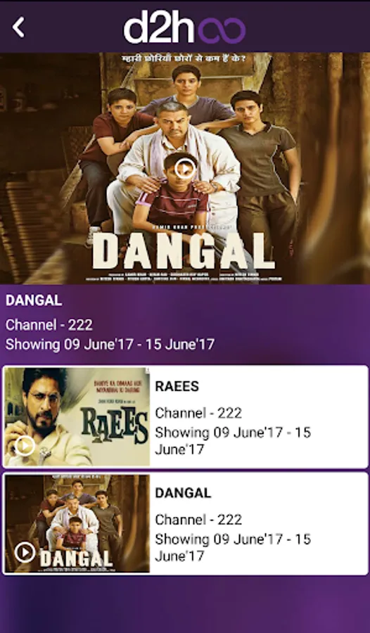· Value added service offering d2h Cinema – View promos, schedule and subscribe with just one-click
