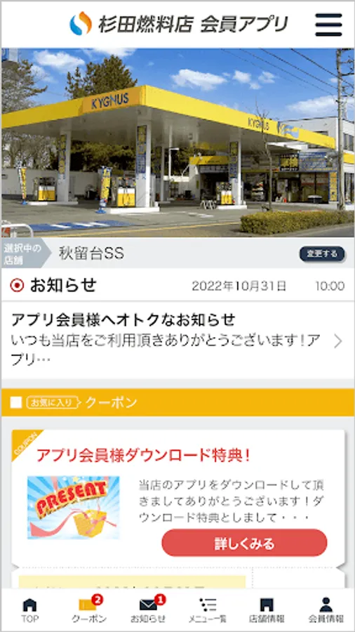 Please use the Sugita fuel store app "Sugita fuel store member app"!