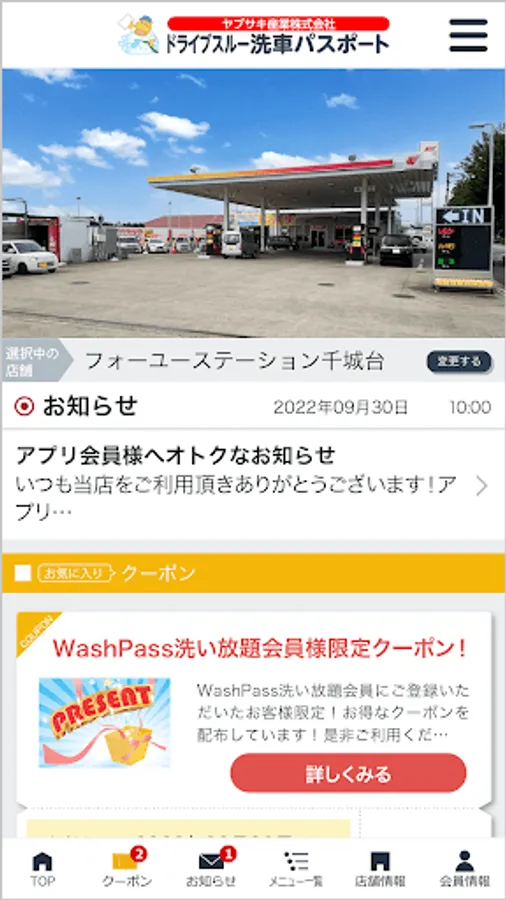 Please use the Yabusaki Sangyo Co., Ltd. app "Yabusaki Drive-Through Car Wash Passport"!