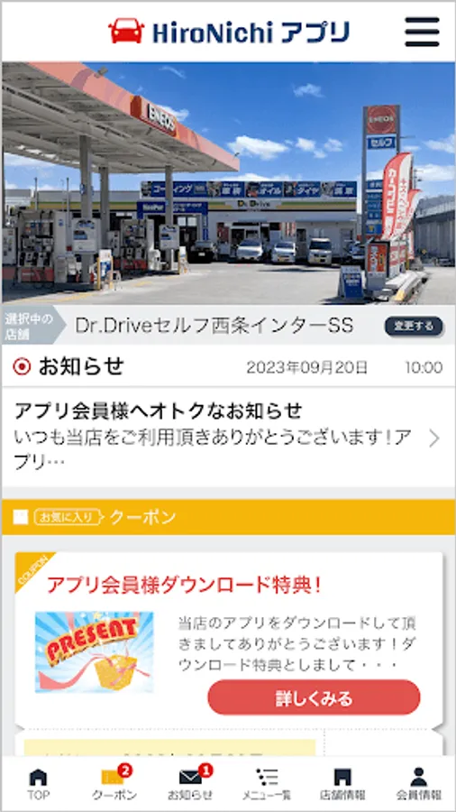 Our official app "HiroNichi App" allows you to use the car wash service with the app, as well as distributes coupons and discount information for various menus that can be used at our store.