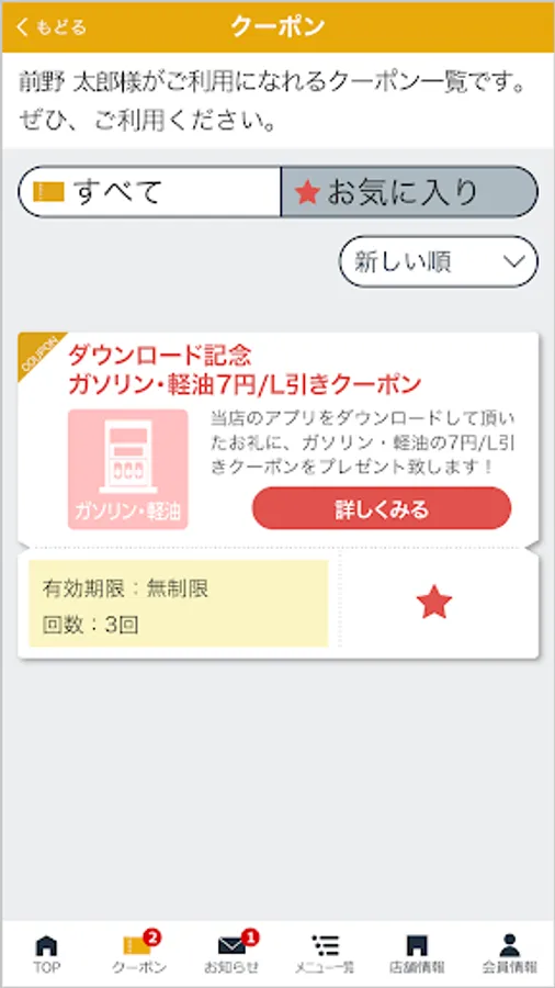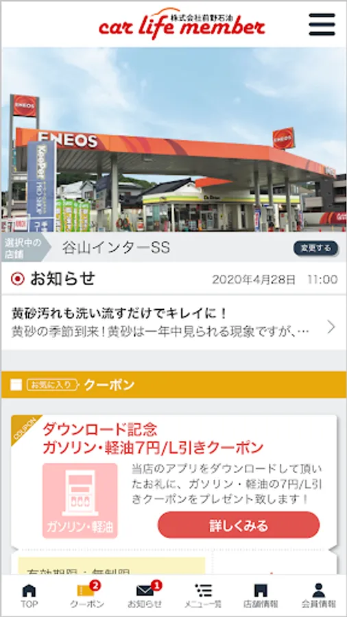 Our official app "Maeno Oil Car Life Member Co., Ltd." allows you to easily make reservations for car washing and coating, manage the maintenance of your car, and get discount coupons and discount information for various menus that can be used at our shop. We are delivering.