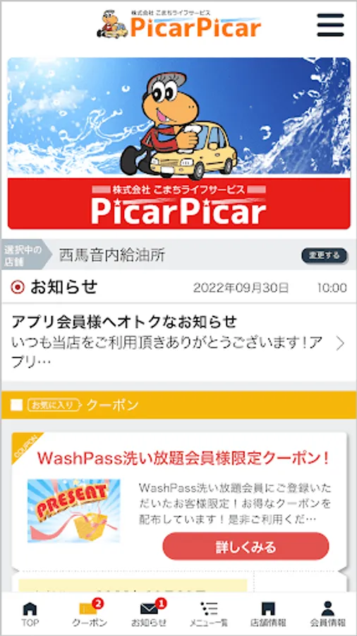 Our official app "Picar Picar" allows you to use the car wash service with the app, and also distributes discount coupons and discount information for various menus that can be used at our shop.