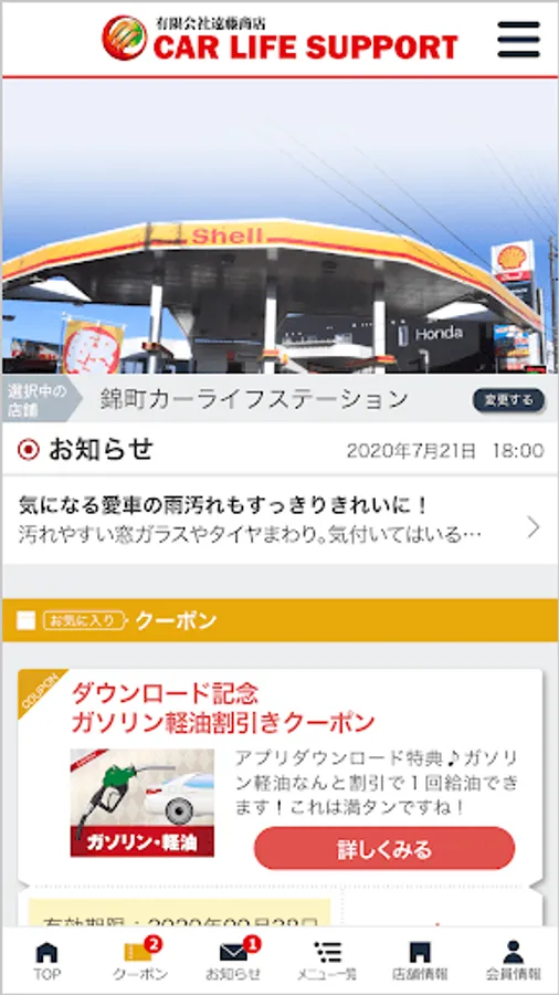 当社のアプリ「有限会社遠藤商店 カーライフサポート」ではアプリで簡単に洗車・コーティングなどのご予約や愛車のメンテナンス管理が可能の他、ご登録いただいた店舗で利用いただけるお得なクーポンや各種メニューの割引情報を配信しております。