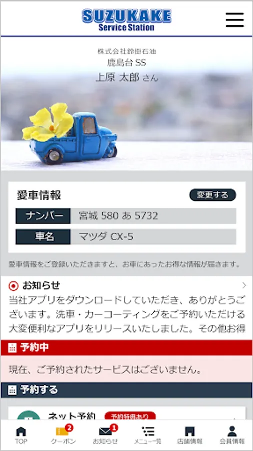 当社の公式アプリ「鈴掛カーライフサポート」ではアプリで簡単に洗車・コーティングなどのご予約や愛車のメンテナンス管理が可能の他、当店で利用いただけるお得なクーポンや各種メニューの割引情報を配信しております。