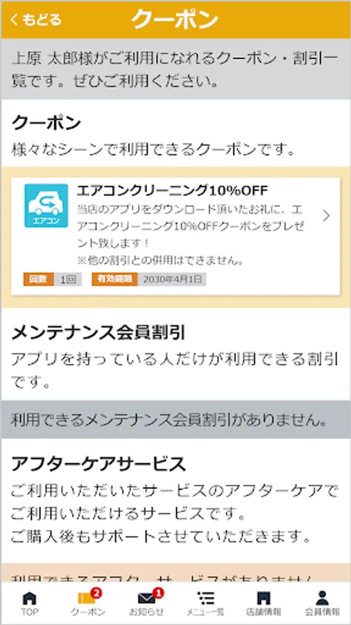 オイル交換などお車のメンテナンスもクーポンで更にお得にご利用頂けます。
