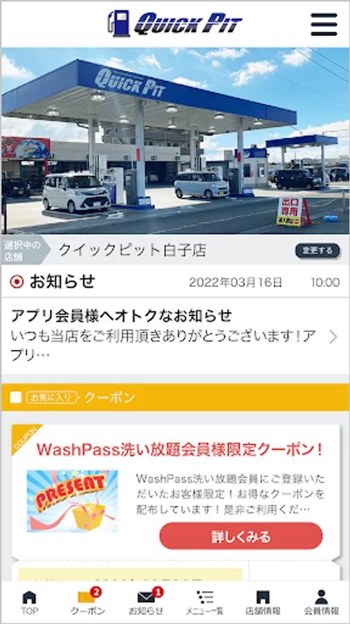 Our app "Quick Pit App" allows you to easily make reservations for car washing and coating, manage maintenance of your car, and deliver discount coupons and discount information for various menus that can be used at registered stores. Doing.