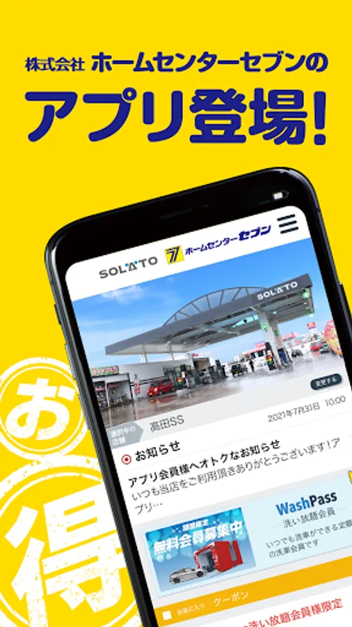 For total support for your car, leave it to Home Center Seven Co., Ltd.'s app "SOLATO Seven Car Wash"!