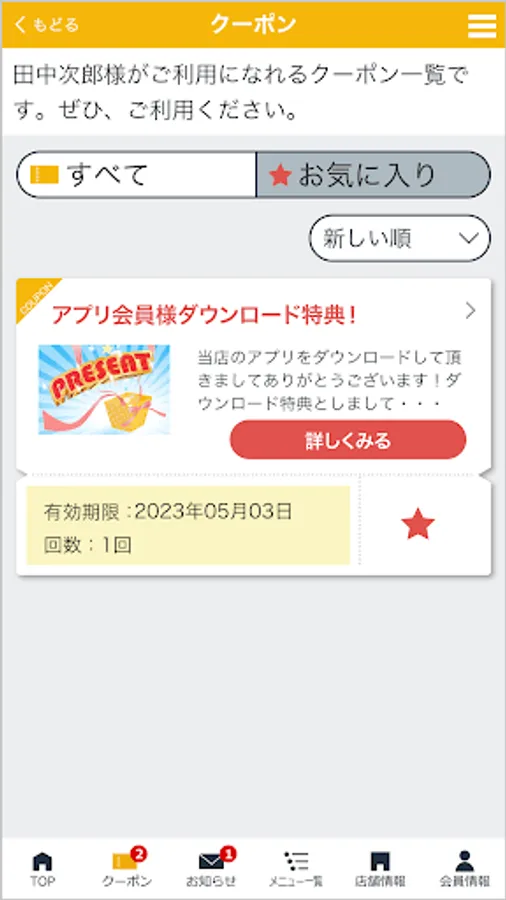 In addition, the app delivers discount coupons and discount information for various menus that can be used at our shop.