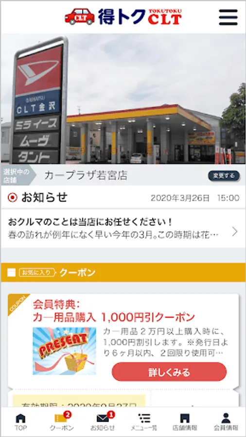 Our official app "Tokutoku CLT" allows you to easily make reservations for car washing and coating, manage the maintenance of your car, and also distribute discount coupons and discount information for various menus that can be used at our shop. increase.