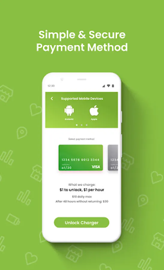 Easy to rent and return: Locate a charging station using our app, then scan the QR code on the station. Quickly fill in your payment information, then manually remove the blinking power bank from the station. Return to any station with an open slot when you’re ready.