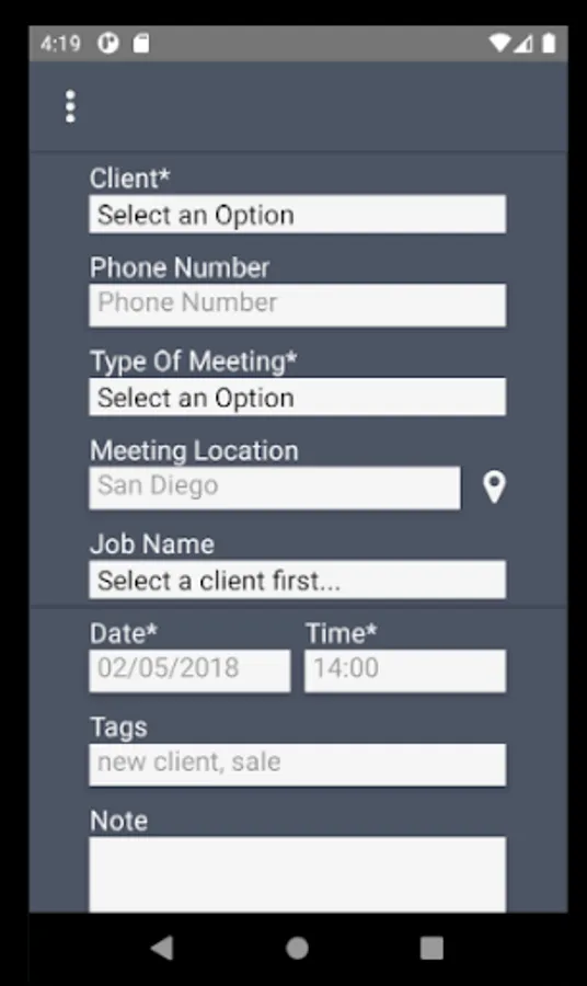 The SDA application is a tool that allows a Sales Rep to schedule a meeting, with an existing or new client.