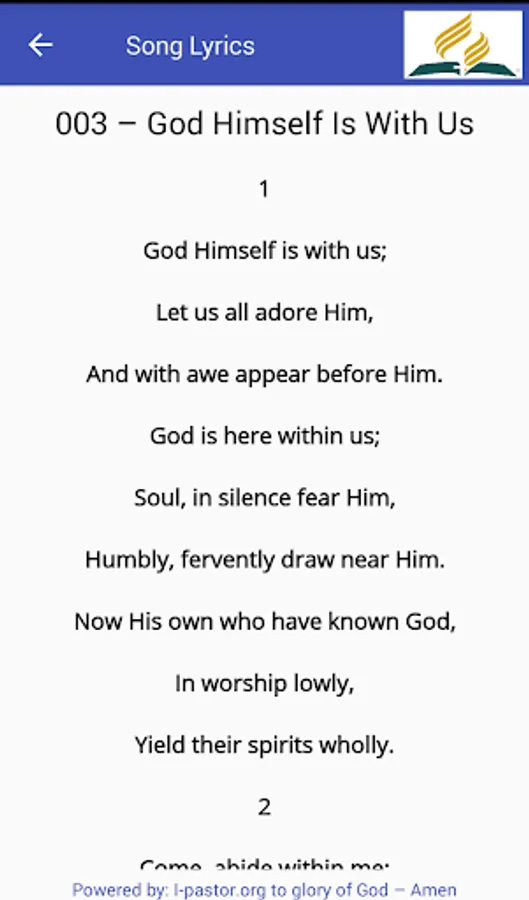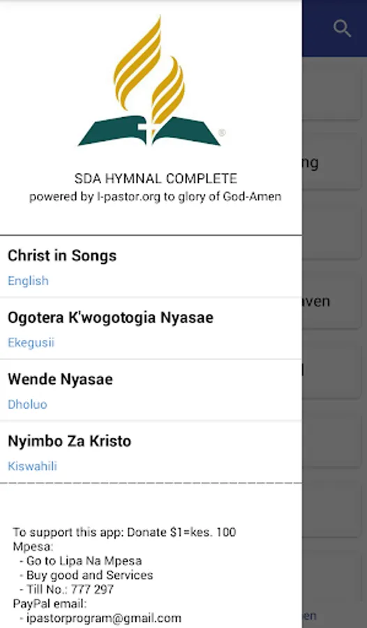 Welcome to SDA HYMNAL COMPLETE provided by I-PASTOR program for digital Evangelism that contains all your favorite praise and worship hymns in your favorite languages English, Kiswahili, Dholuo, and Ekigusii just in one app.