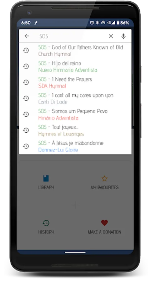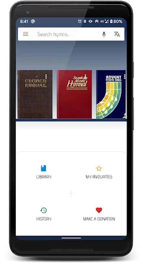 + Search : allows you to find hymns by keyboard typing or voice typing