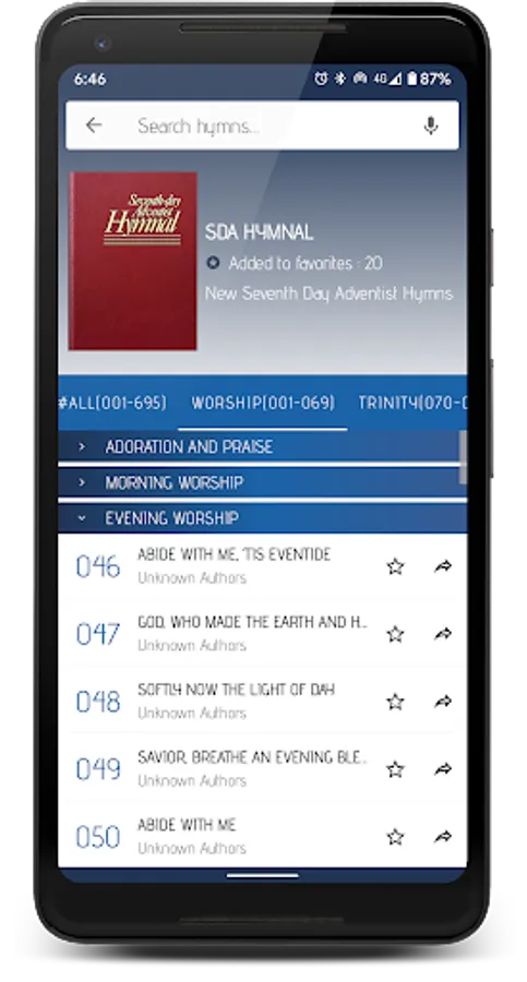 • Save and sync your favorite hymns