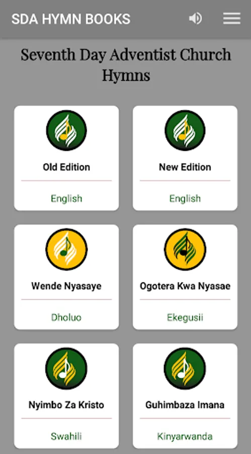 SDA Combined Hymns offers the Seventhday Adventist Hymns in five different languages in one application making it easy to change from Nyimbo Za Kristo to SDA Hymnal or from Wende Nyasaye to SDA Hymnal or from Ogotero Kwa Nyasae to Nyimbo Za Kristo and vice versa.