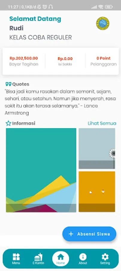 In order to become a SMART School, SD Alami launched a Mobile Application to facilitate academic administration, student affairs, payments, shopping in canteens and cooperatives online, BALANCE top up via Payment Gateways (Bank Transfers, GoPay, ShopeePay, Alfamart, etc.)