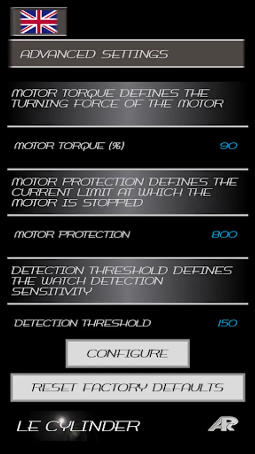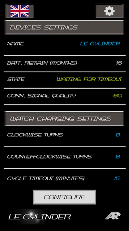 It is used to read and write a Cylinder operating configuration by accessing its parameters using the Bluetooth Low Energy (BLE) capability of the phone.