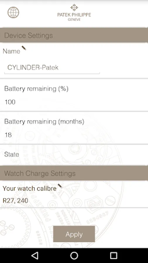 This app works with the rotary winding case from Patek Philippe that allows the maintaining of the automatic mechanism of your watch.