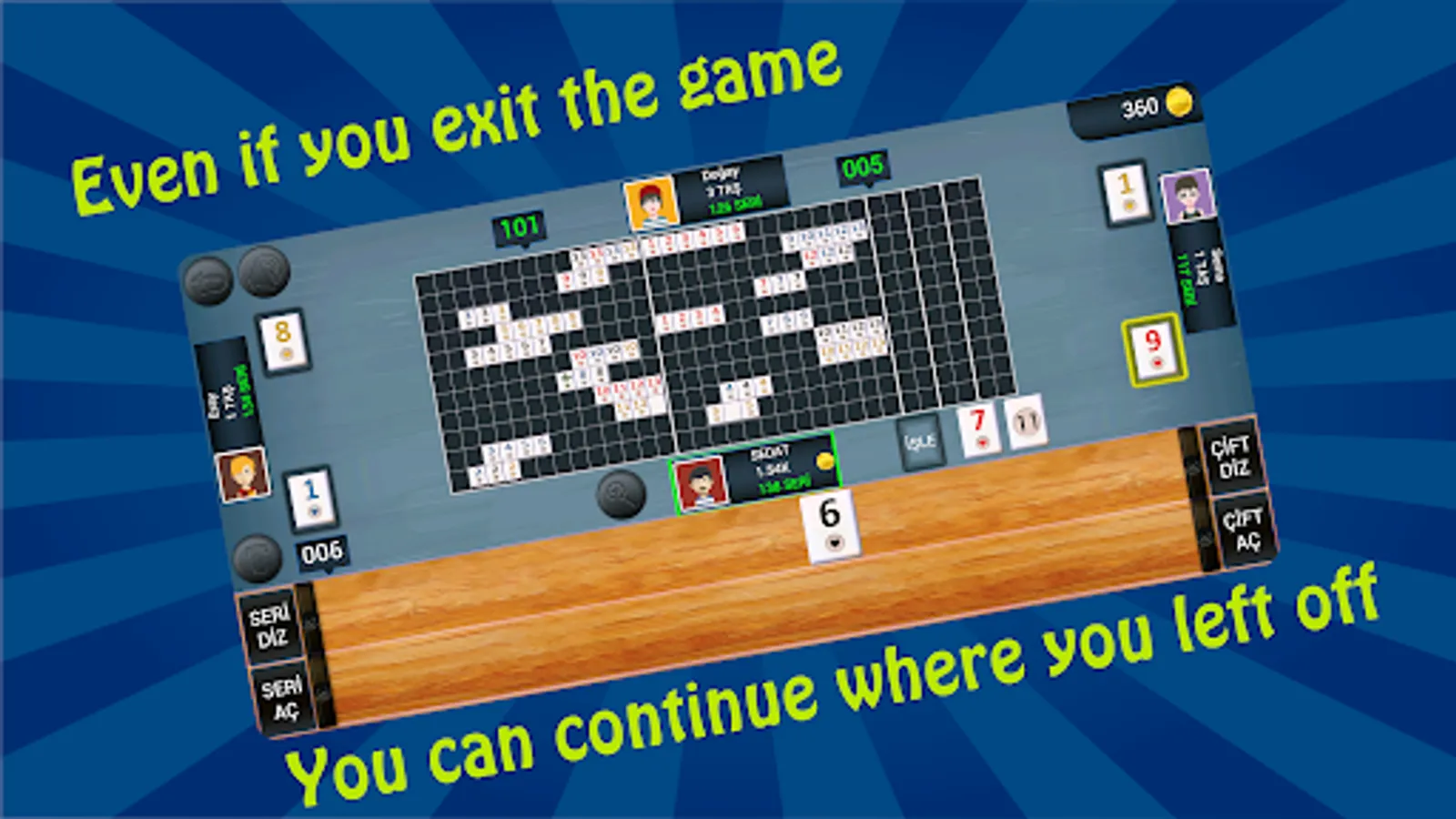 Thanks to advanced artificial intelligence, you can start the game quickly without waiting for an opponent. You don't have to wait until it's your turn, enjoy the fun of Okey with fast and advanced artificial intelligence.