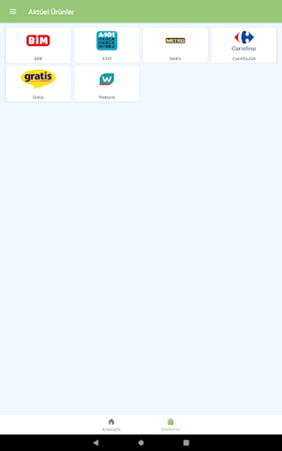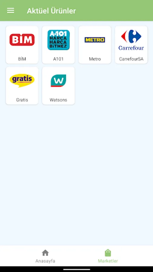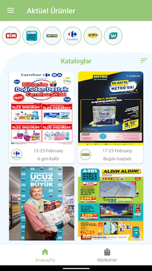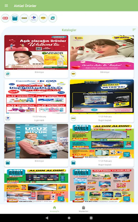 You can easily view the discount catalogs of the markets you choose through our application. The number of markets in the application will increase day by day. If a new market has been added, new markets will be automatically added to the Markets tab when opening your application.