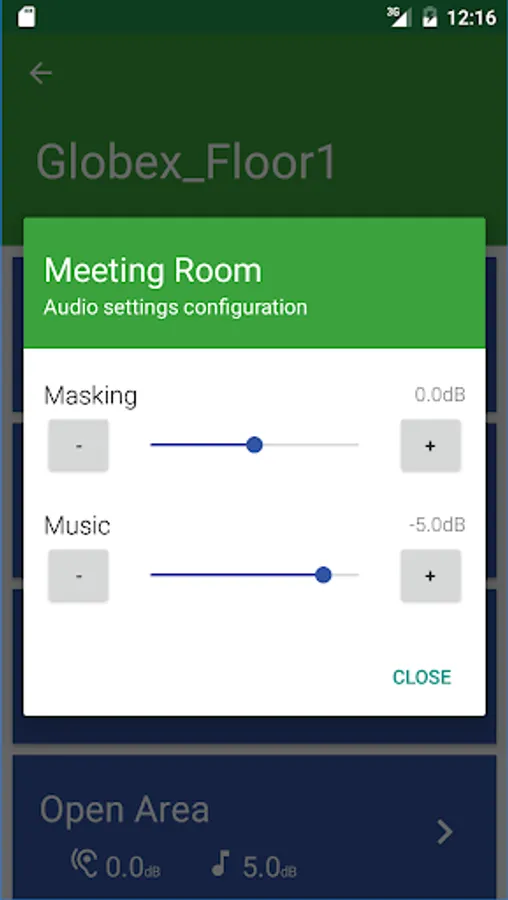 The VoiceArrest Volume Control app allows authorized users to adjust the sound masking volume from your android device. Adjust the masking sound and music volume of each zone independently.