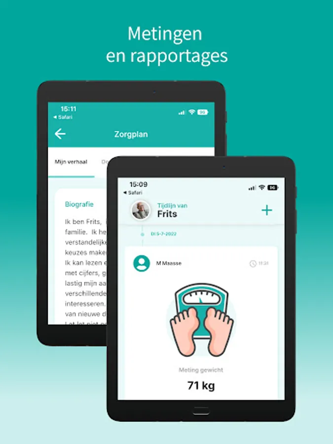 ClientApp is intended for care recipients and their network of family and informal carers for sharing information from the care recipient, such as care plans, reports and measurements. An important role is reserved for the well-being of the care recipient by showing and sharing moments of and with the care recipient.