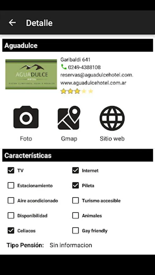 It is a catalog of options that includes information about different types of accommodations, a directory with various alternatives of Gastronomy, a set of activities that can be developed in Tandil, General Information on various services such as local car rental, laundries, hairdressers, ATMs automatic, exchange houses, health centers, emergency taxis and remises agencies, transportation companies, and other markets.